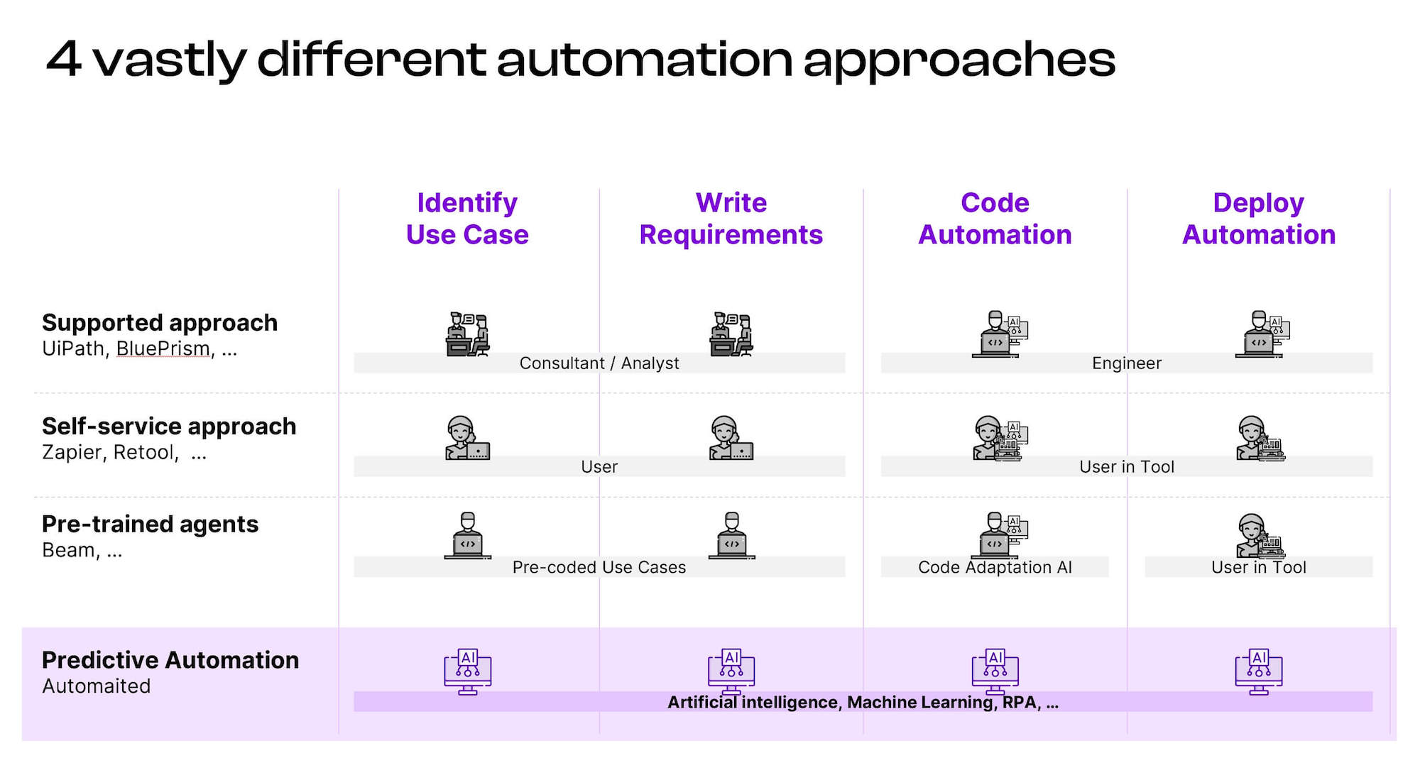 We will compare four prevalent automation approaches, looking at their representative tools and evaluating their potential applications.
